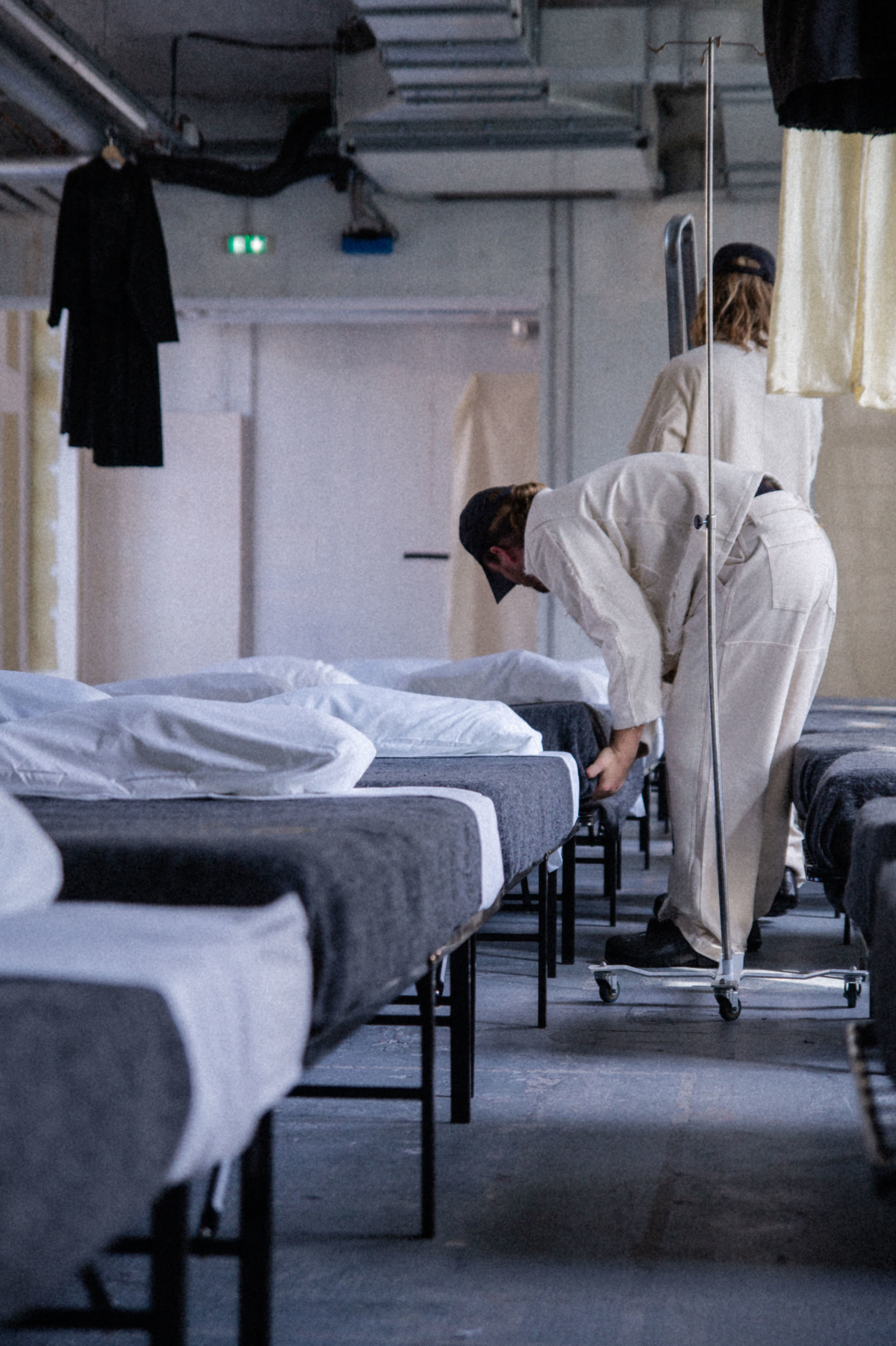 Pour la présentation de sa collection SS23, AIREI s'empare à nouveau du 3537 pour y performer. À l’aide de 34 lits, Drew Curry recrée le dortoir d’un foyer de Calcutta dans lequel il a été bénévole. Chaque lit est recouvert d’un couvre-lit sur lequel un message est brodé. Le designer sort une à une les pièces de la collection cachées sous les draps, les suspendant au plafond pour les révéler au public.