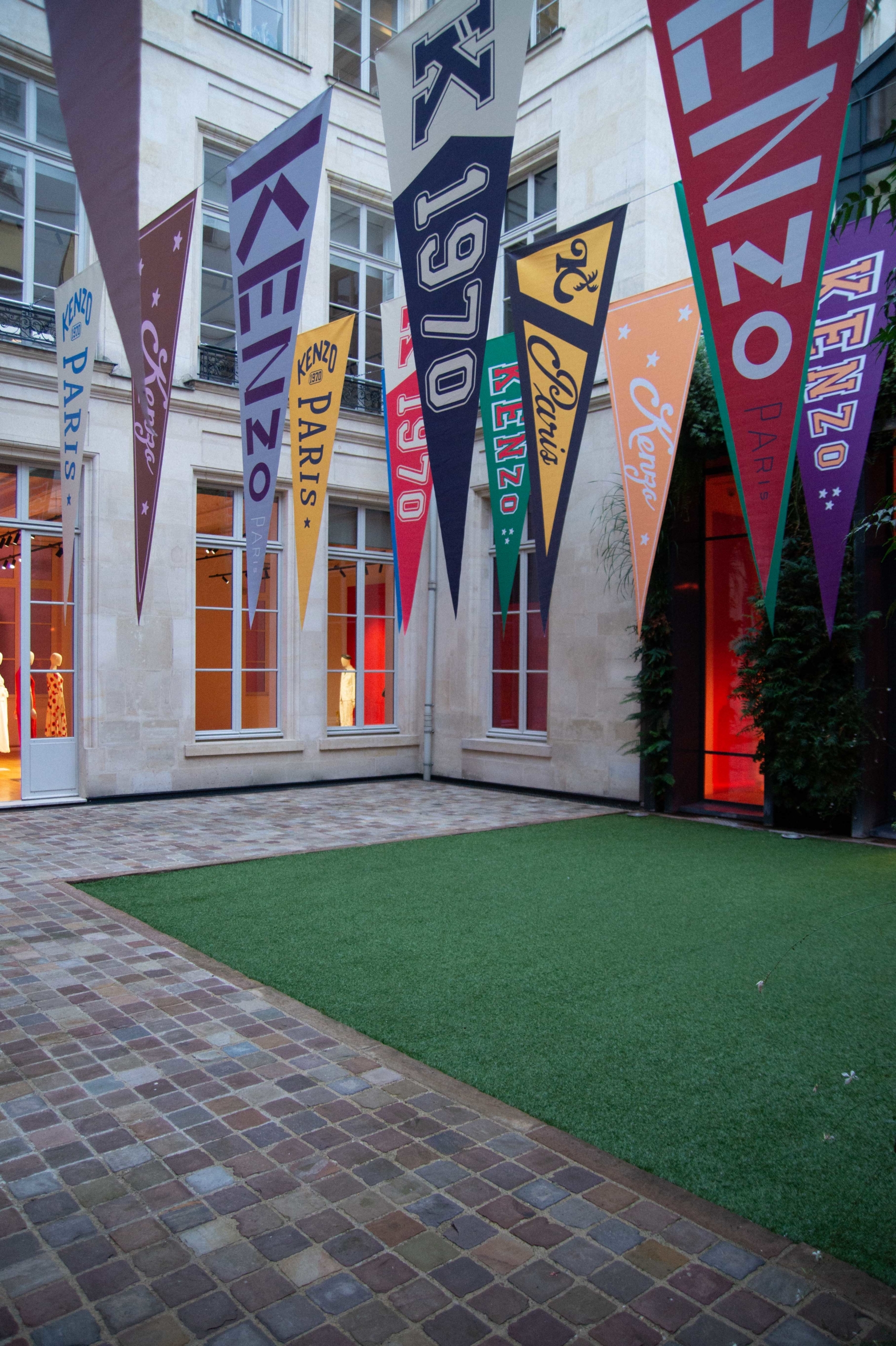 À l'occasion des journées particulières du groupe LVMH, Kenzo décide d'ouvrir les portes de sa maison. L'occasion de présenter des pièces emblématiques de ses archives, jamais encore exposées et de les associer aux créations plus contemporaines de son directeur artistique Nigo. Le parcours se veut immersif, des cloisons semi-opaques en tissus ou en carreaux de verre reprenant l'idée du Shoji, viennent structurer l'espace et mettre en valeur les silhouettes. Ce jeu de cacher/révéler créé par la scénographie, est une manière de symboliser les différentes ères qu'a connu la maison.