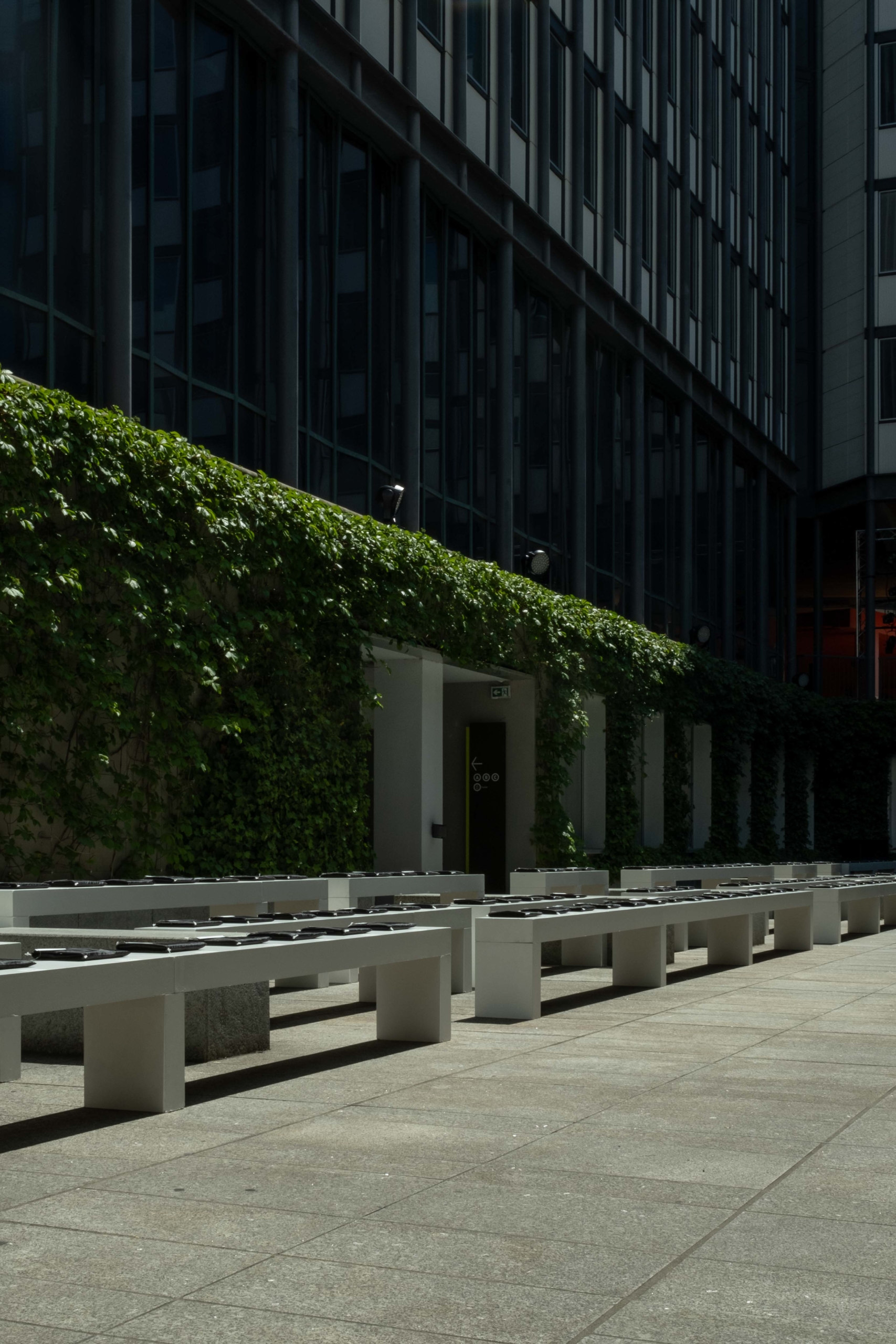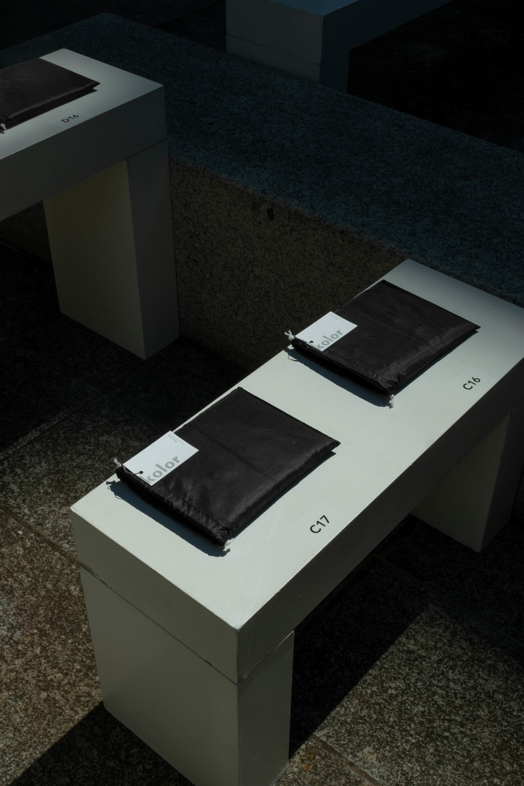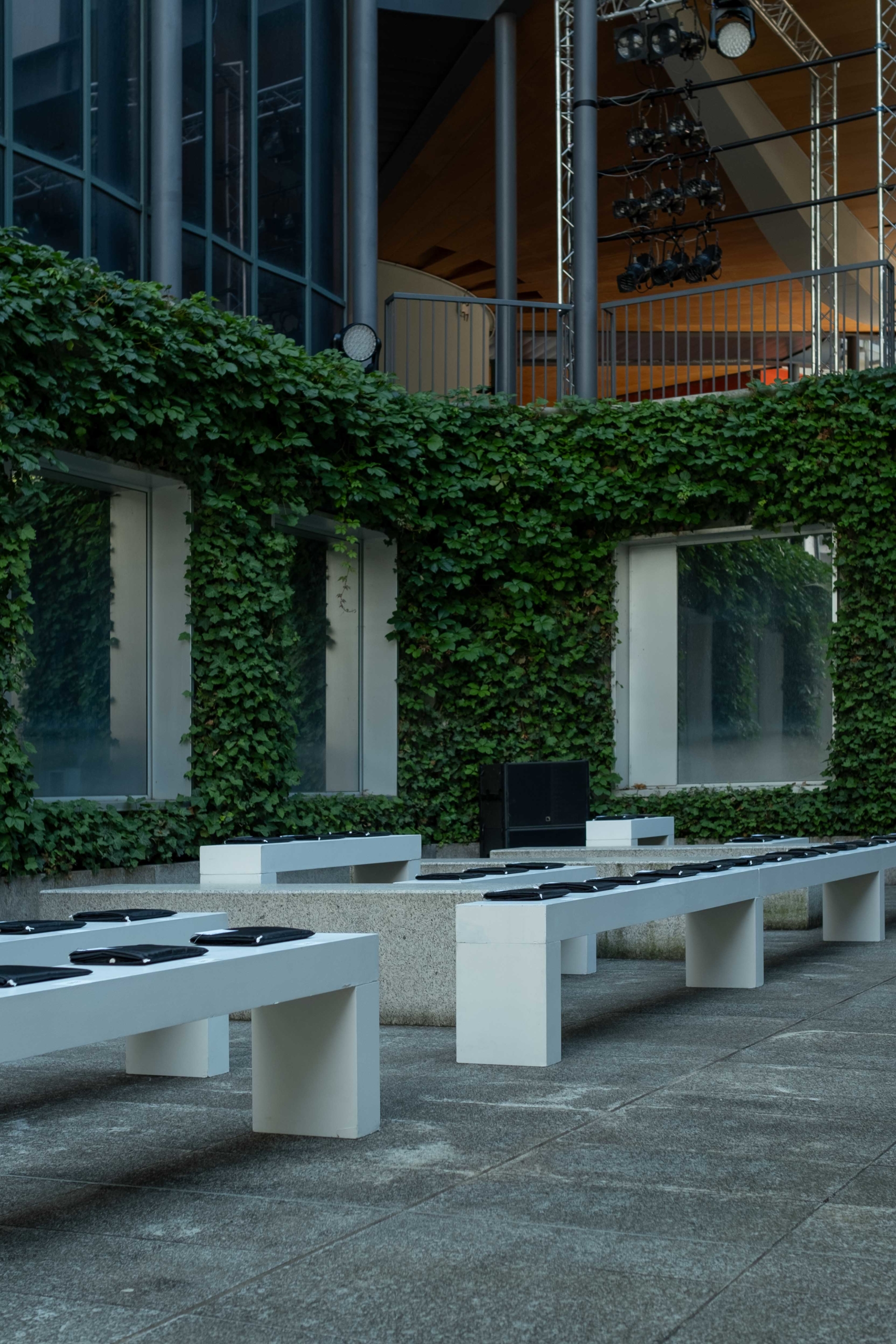 Toujours à la recherche de lieux atypiques, Junichi Abe apprécie l'architecture moderne faite de béton et d'acier. C'est donc au sein de la faculté de Jussieu, devant les façades vitrées de la bibliothèque universitaire, que sa collection a été présentée.L'association entre le lieu et la scénographie crée un rendu graphique, géométrique, entre minimalisme et sophistication.