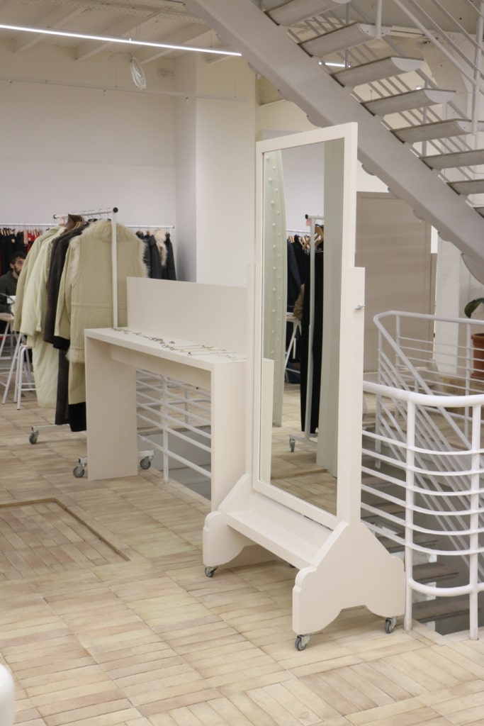 Investir le tout nouvel espace des bureaux Lemaire pour y créer un écrin, monochrome et enveloppant avec des éléments de présentation aux tonalités neutres. Présentoirs à bijoux, miroirs, portant sur mesure, structures lumineuses pour un environnement feutré. Réutilisation des éléments de décor des précédentes saisons permettant de réduire l’empreinte écologique à son minimum