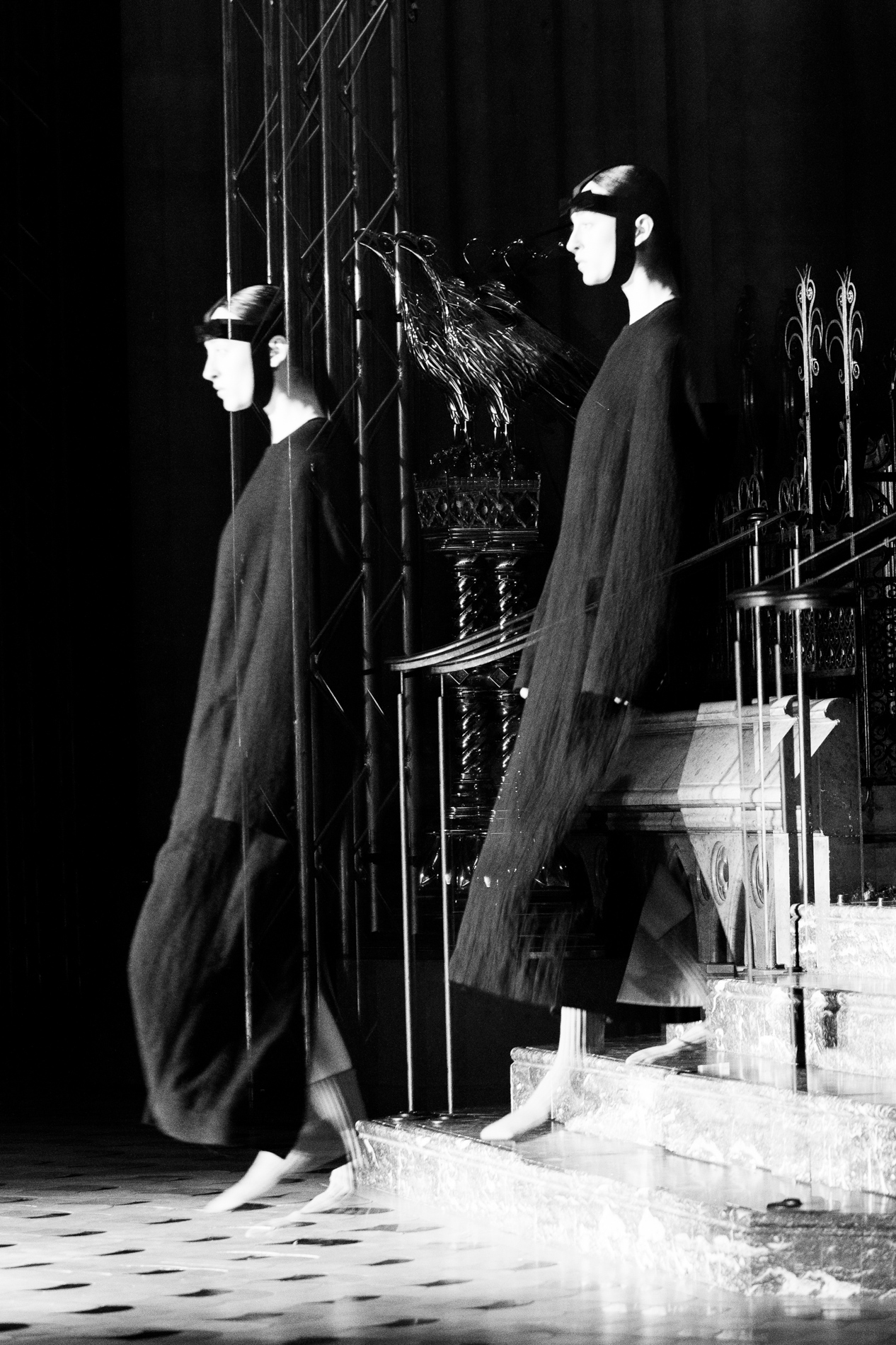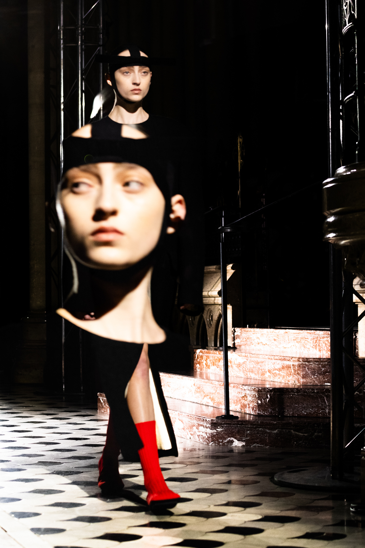 Uma Wang et la Cathédrale Américaine, un cadre qui faisait écho à la nouvelle collection. Intitulée « Memorabilia », un flux de souvenirs. Une réminiscence de formes, de lignes et de volumes.